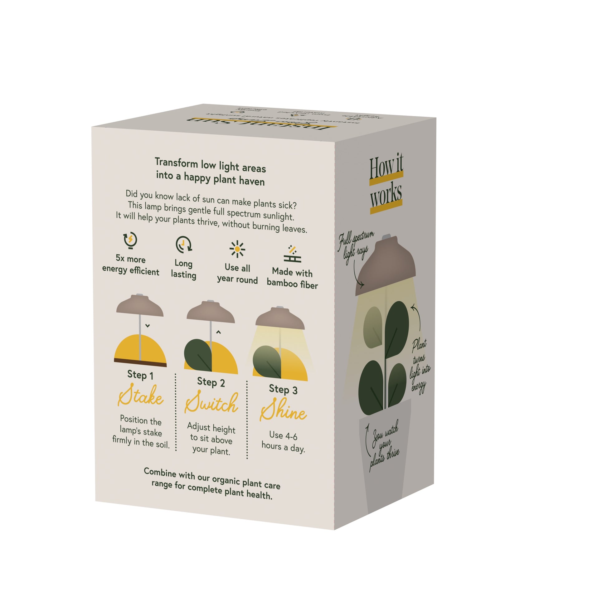 Simply press the lamp head gently onto the stake until securely in place, then position the stake firmly in your plant’s pot. Adjust to your desired height, plug the USB into a power source, and turn it on. Your plants will love the extra sun for up to 25,000 hours, encouraging year-round, healthy growth indoors!